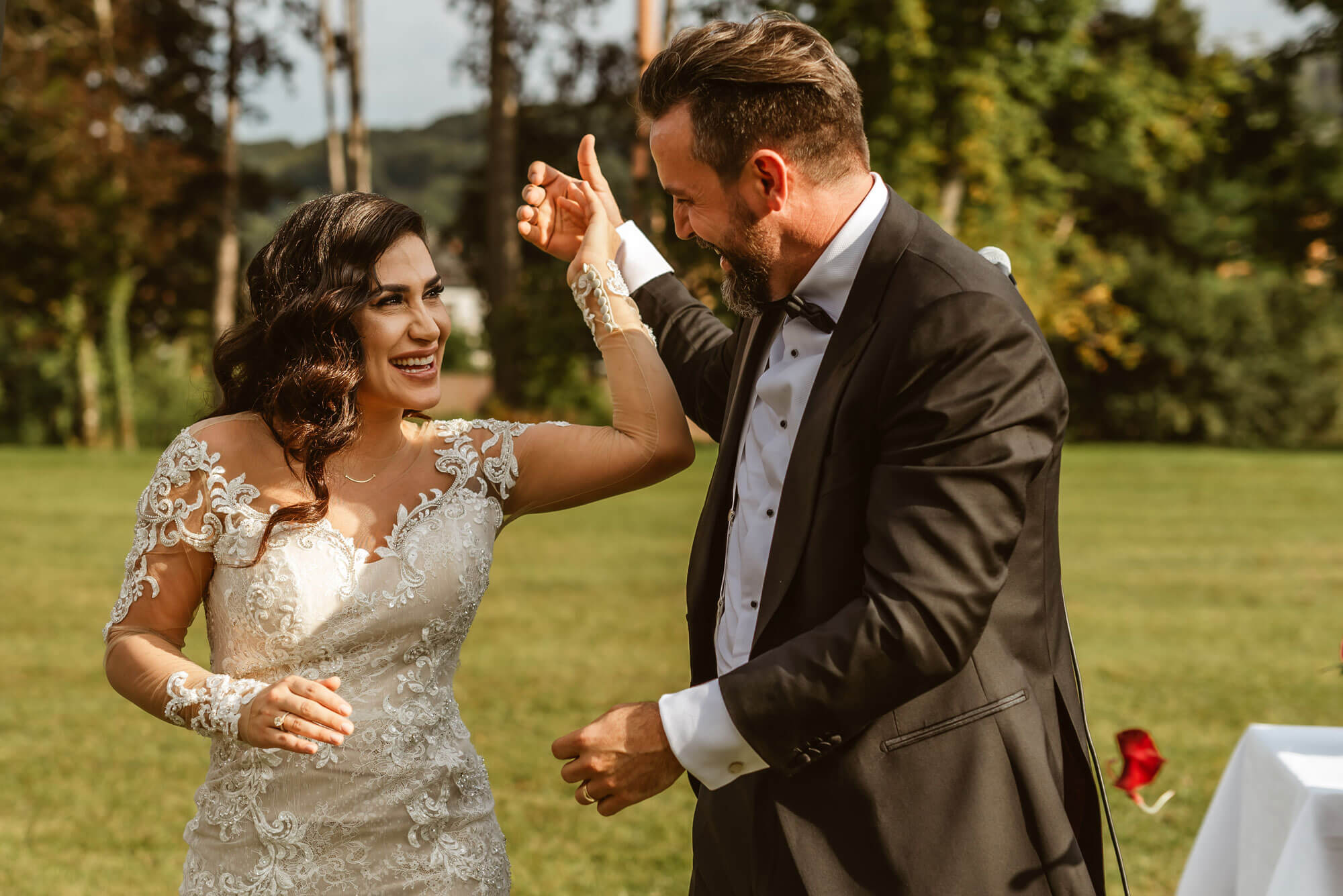 Schließlich fällt alle Spannung von dem frisch getrauten Paar ab, und es beginnt ein rauschendes Fest. Beide sind sehr froh, dass sie sich für Bernd entschieden haben.
